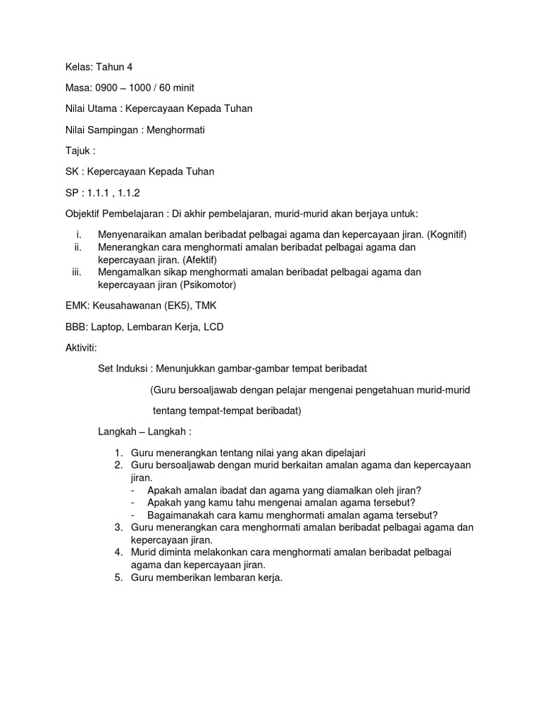 Pbs Tingkatan 2 Tema 1 Kepercayaan Kepada Tuhan