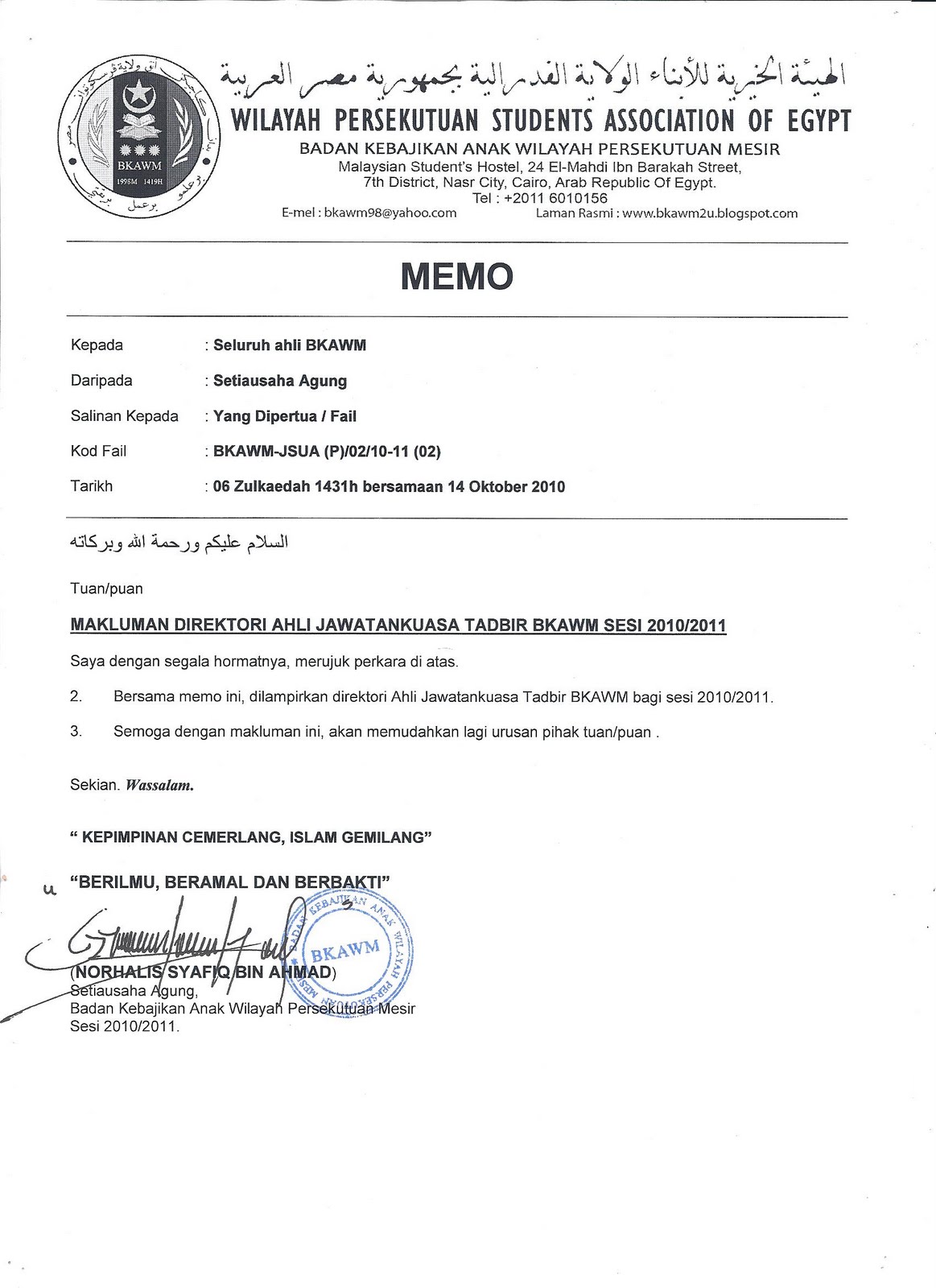 Memo Direktori Ahli Jawatankuasa Bkawm Sesi 2010 2011