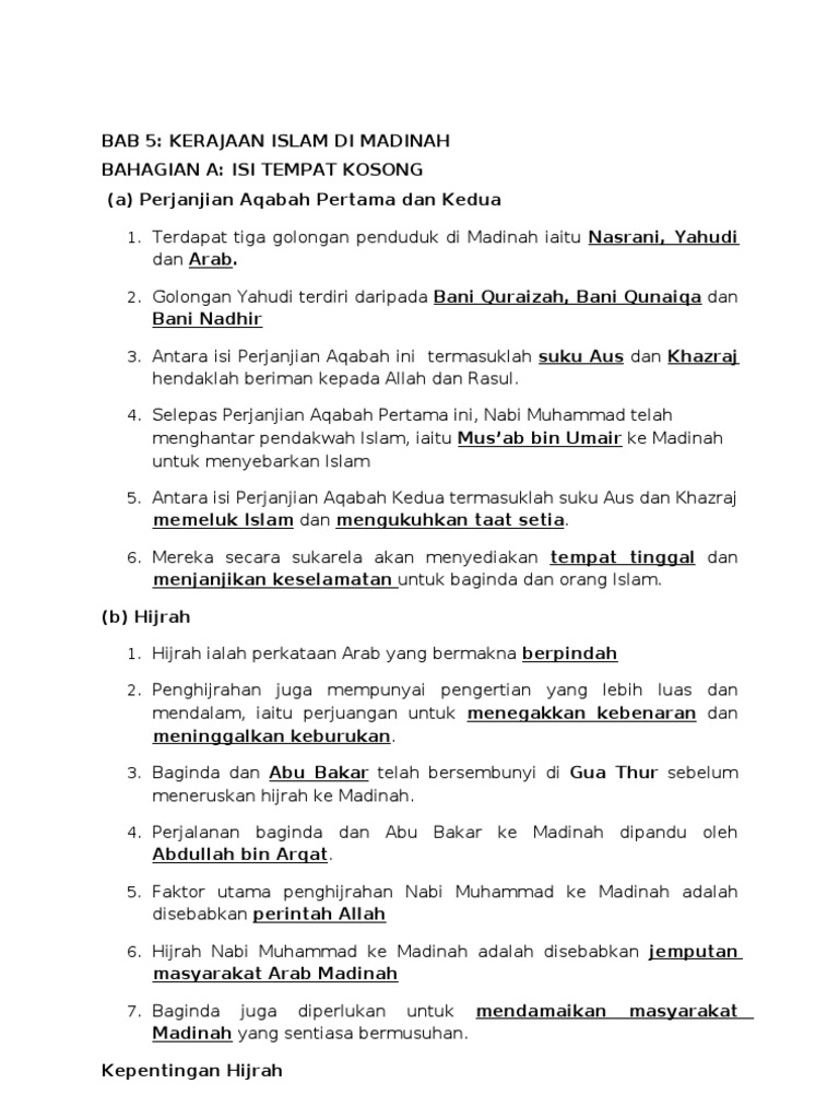 Sejarah Tingkatan 4 Bab 5 Kerajaan Islam Di Madinah
