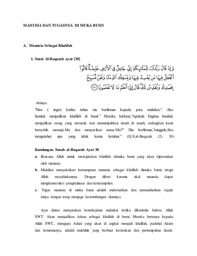 Tugas manusia sebagai khalifah allah di muka bumi antara lain menyangkut tugas mewujudkan kemakmuran di muka bumi q s. Surat al baqarah. Tugas manusia sebagai khalifah allah di muka bumi antara lain menyangkut tugas mewujudkan kemakmuran di muka bumi q s hud. Manusia diciptakan allah adalah sebagai makhluk yang paling sempurna dimuka bumi maka secara otomatis manusia adalah pemimpin khalifah yang nantinya akan dimintai pertanggung jawabannya.